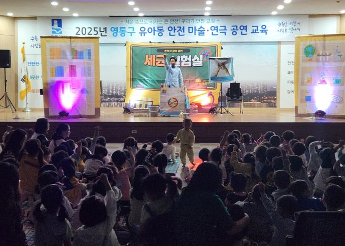 (포탈뉴스통신) 수원시 영통구는 2025. 10. 13. 영통구청 대회의실에서 관내 유아를 대상으로 안전한 위생 습관을 형성하기 위한 ‘찰리박사의 세균실험실’ 체험형 안전마술·연극 공연 교육을 실시했다.