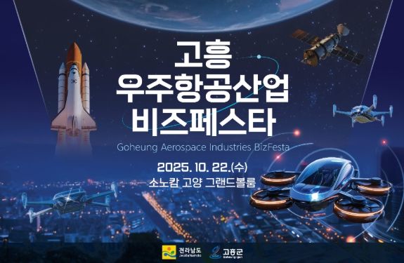 (포탈뉴스통신) 고흥군은 대한민국 우주항공산업의 중심지로서 미래 전략산업을 선도하기 위해 오는 10월 22일 경기도 고양시 소노캄 호텔에서 ‘2025 고흥 우주항공산업 비즈 페스타’를 개최한다고 밝혔다.