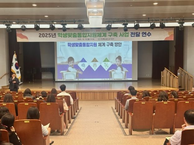 (포탈뉴스통신) 경상북도 김천교육지원청은 10월 13일 월요일, 김천학생문화예술센터 드림마루에서 관내 52개 초‧중‧고등학교 행정실장 및 업무담당자를 대상으로 2025년 학생맞춤통합지원체계 구축을 위한 전달 연수를 개최했다.