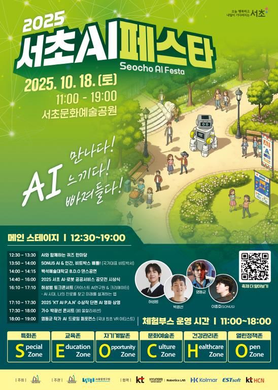 서초구가 주최하고 숭실대 AI융합연구원이 공동 주관하는 이번 행사는 주민들이 AI 시대의 변화와 가능성을 체험하고, 배움과 재미를 모두 얻을 수 있는 참여형 축제로 마련됐다. KT, 현대자동차 로보틱스랩, 한국콜마, 이스트소프트 등 다양한 기업이 함께한다. 특히, 전국 최초 AI 특구인 서초가 쌓아온 혁신도시로서의 성과를 지역사회와 공유하고, 미래 발전을 함께 모색한다는 취지를 담았다.