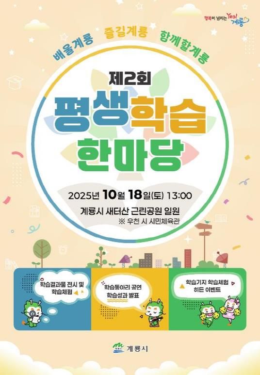 (포탈뉴스통신) 계룡시는 오는 18일 오후 1시부터 시청 앞 새터산 근린공원에서 시민이 주도하는 배움의 축제 “2025 제2회 계룡시 평생학습 한마당”을 개최한다고 밝혔다.