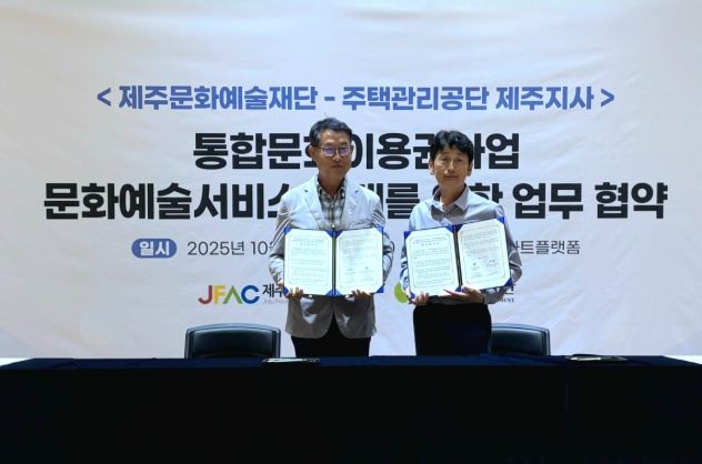 (포탈뉴스통신) 제주문화예술재단과 주택관리공단 제주지사는 지난 13일 통합문화이용권 사업(문화누리카드)과 연계한 문화예술 서비스 확대를 위해 업무협약을 체결했다.