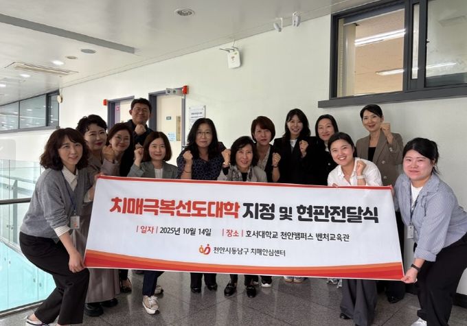(포탈뉴스통신) 천안시는 14일 치매극복선도대학으로 신규 지정된 호서대학교 글로벌융합대학에 현판을 전달했다고 밝혔다.