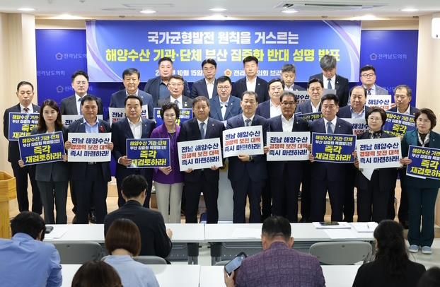 (포탈뉴스통신) 전라남도의회 농수산위원회 최동익 의원(더불어민주당·여수)은 10월 15일 제394회 임시회 도의회 브리핑룸에서 '국가균형발전 원칙을 거스르는 해양수산 기관·단체 부산 집중화 반대 성명서'를 발표했다.