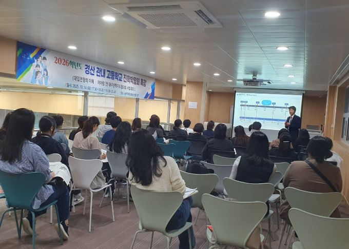 (포탈뉴스통신) 경상북도경산교육지원청은 2025년 10월 14일 남부미래교육관에서 ‘2026학년도 경산 관내 고등학교 진학박람회’를 성황리에 개최했다. 이번 행사에는 중학교 3학년 학생과 학부모 등 200여 명이 참석해 높은 관심을 보였다.