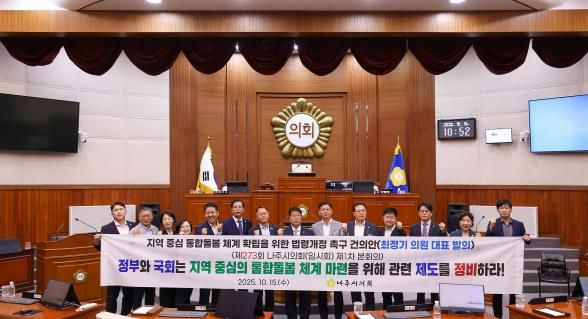 (포탈뉴스통신) 나주시의회는 15일 제273회 임시회 제1차 본회의를 열고 ‘지역 중심 통합돌봄 체계 확립을 위한 법령개정 촉구 건의안’을 채택했다.