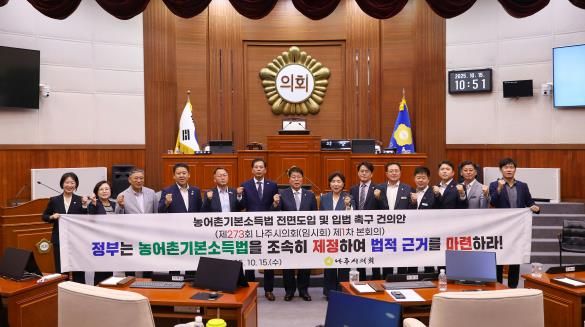 (포탈뉴스통신) 나주시의회는 15일 제273회 임시회 제1차 본회의를 열고 ‘농어촌기본소득법 전면도입 및 입법 촉구 건의안’을 채택했다.
