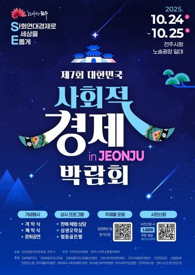 전주시는 오는 24일과 25일 이틀간 시청 앞 노송광장 일원에서 대한민국을 대표하는 사회적경제기업들이 대거 참여하는 ‘제7회 대한민국 사회적경제 박람회 in JEONJU’를 개최한다.