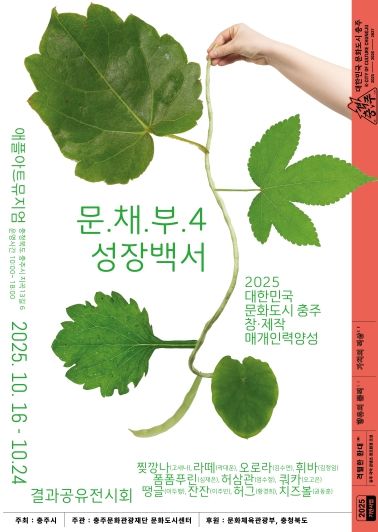 (포탈뉴스통신) 충주시와 (재)충주문화관광재단 문화도시센터는 2025 대한민국 문화도시 충주 사업의 일환으로 진행한 ·제작 매개인력 양성 '문화를 채우는 부족 4 : 성장백서'의 결과 공유 전시회를 충주시 애플아트뮤지엄(충주시 지현동 852)에서 10월 16일 15시 오픈식을 시작으로 24일까지 9일간 개최한다.