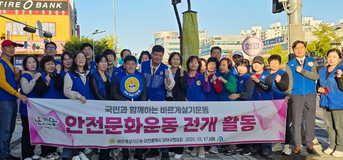(포탈뉴스통신) 대전 대덕구는 17일 바르게살기운동 대전대덕구협의회(회장 김광남, 이하 협의회)가 오정네거리 일원에서 바른생활 및 안전문화 캠페인을 전개했다고 밝혔다.