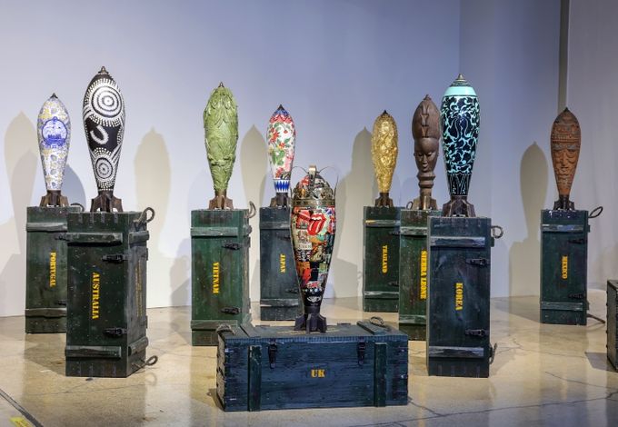 카티야 트라불시의 작품은 군사적 파괴와 살상 도구의 상징인 ‘포탄’을 섬유와 도자, 금속 등 정교한 수공예 조각으로 전환한 설치 작품으로 작가가 인도, 이란, 중국, 모로코 등 12개국을 여행하며 현지에서 만난 장인들과 협업해 완성했다.