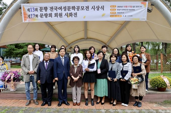 (포탈뉴스통신) 충주 문향회(회장 안애정)에서 주최하는 ‘제13회 문향전국여성문학공모전 시상식과 제17회 문향회 시화전 개막식’이 17일 호암지 생태공원 야외무대에서 열렸다.