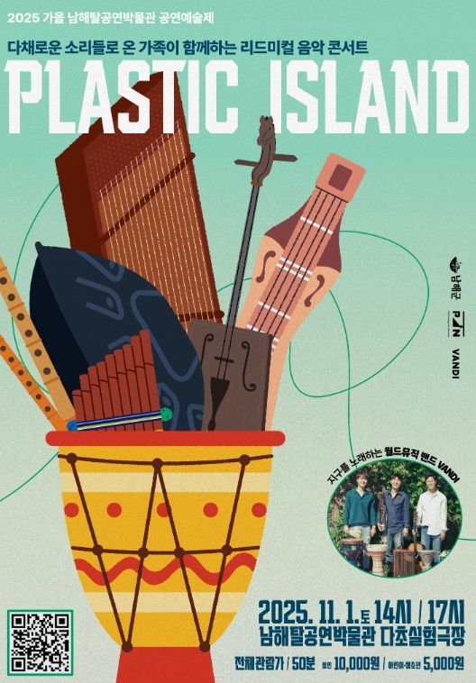 (포탈뉴스통신) 남해탈공연박물관(이동면 남해대로 2412)은 오는 11월 1일, 월드뮤직 콘서트 ‘플라스틱 아일랜드 Plastic Island’를 개최한다.