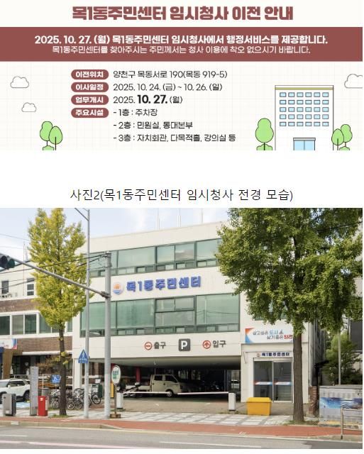 양천구, 목1동 주민센터 임시청사로 이전...10월 27일 업무 개시