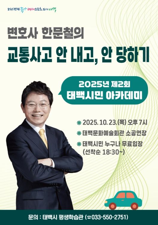 (포탈뉴스통신) 태백시는 시민들의 교통안전 의식을 높이고 사고 예방 문화를 확산하기 위해 오는 23일 오후 7시, 태백문화예술회관 소공연장에서 ‘제2회 태백시민 아카데미’를 개최한다고 밝혔다.