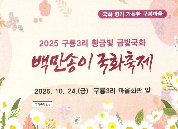 한양수 구룡3리 이장은 “올해는 국화 전시에 더해 지역 예술인들의 공연까지 준비했다”며 “마을 주민들이 직접 가꾼 국화의 아름다움을 많은 방문객과 지역민들이 함께 즐기고, 자연 속에서 여유로운 시간을 만끽하길 바란다”고 말했다.