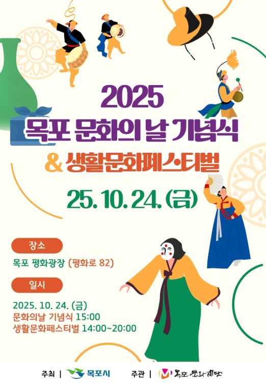(포탈뉴스통신) 목포문화재단은 오는 10월 24일 오후 2시 평화광장에서 ‘2025 목포 문화의 날 기념식 및 생활문화페스티벌’을 개최한다.