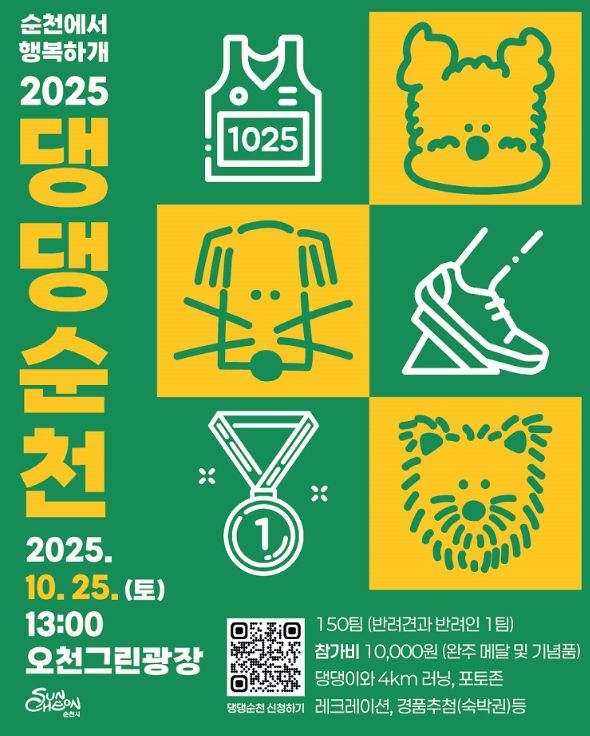 (포탈뉴스통신) 순천시는 오는 25일 오후 1시 오천그린광장 일원에서 반려견과 반려인이 함께 달리는 힐링 러닝축제 ‘2025 댕댕순천’을 개최한다.
