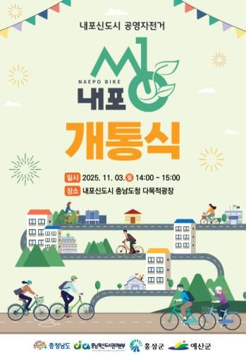 (포탈뉴스통신) 지방자치단체조합 충남혁신도시관리본부는 오는 11월 3일 14시 충남도청 다목적광장에서 내포신도시 공영자전거‘내포씽’개통식을 갖고 운영을 시작한다고 밝혔다.