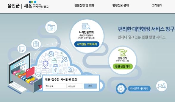 새올 전자민원창구는 국민신문고시스템 운영이 재개되는 시점에 종료된다. 이에 따라, 군청 업무에 관한 생활 불편, 도로·교통, 환경 등 단순한 민원과 일반 질의·건의성 민원을 신청할 수 있다.