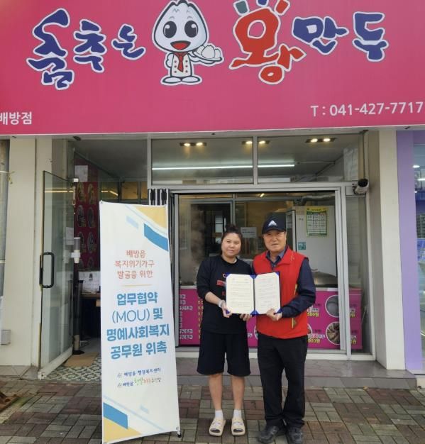 이번 협약을 통해 춤추는왕만두는 지역 내 도움이 필요한 이웃을 발굴하고, 배방읍 찾아가는 보건복지팀과 협력해 복지 사각지대 해소에 함께 나서기로 했다.