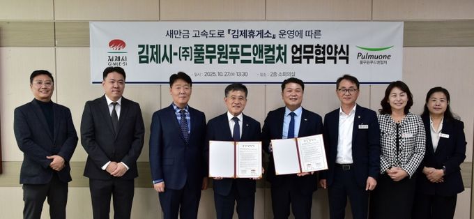 (포탈뉴스통신) 김제시는 27일 ㈜풀무원푸드앤컬처와 '새만금전주간' 고속도로 개통에 따라 새롭게 조성되는‘김제휴게소’운영에 따른 업무협약을 체결했다고 밝혔다.