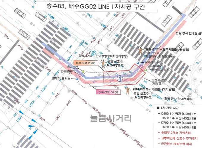 (포탈뉴스통신) 원주시상하수도사업소는 태장배수지 설치사업의 일환으로 진행되는 늘품사거리 교차로 구간 송배수관로 설치공사를 야간에 실시한다.