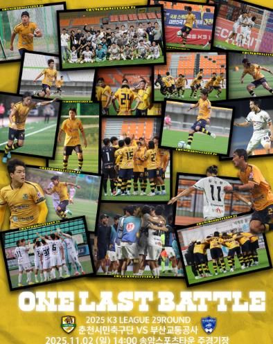 (포탈뉴스통신) 춘천시민축구단의 2025 시즌 마지막 홈경기가 오는 11월 2일 오후 2시 송암스포츠타운에서 열린다.
