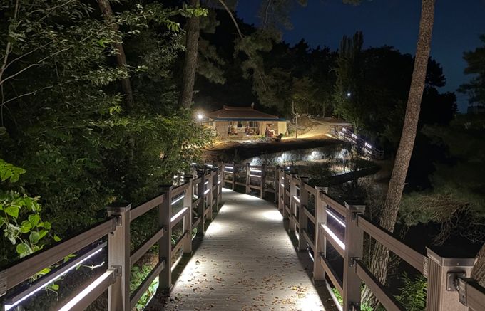 특히 수변데크와 산책길에는 경관조명을 설치해 야간에도 안전하고 아름다운 보행환경으로 구성했으며, 전통미와 자연경관이 조화를 이루는 공간으로 새단장했다.