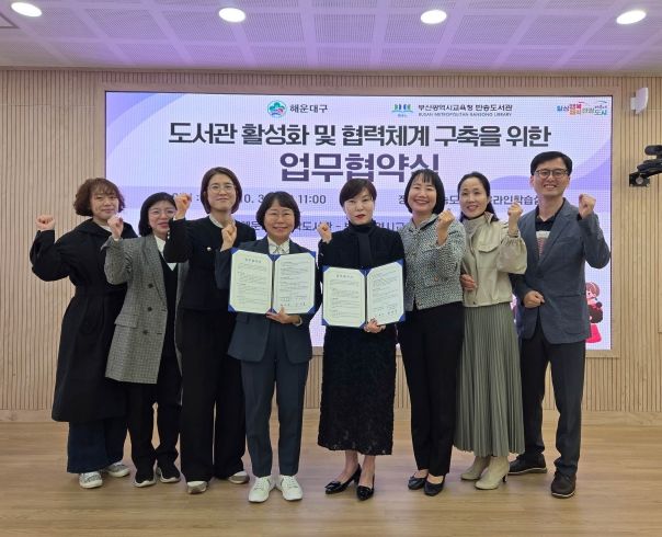 해운대구와 부산광역시립반송도서관은 이번 협약을 계기로 독서문화 활성화와 주민의 문화·교육 복지 향상을 위해 지속적인 협력과 교류를 이어나갈 예정이다.