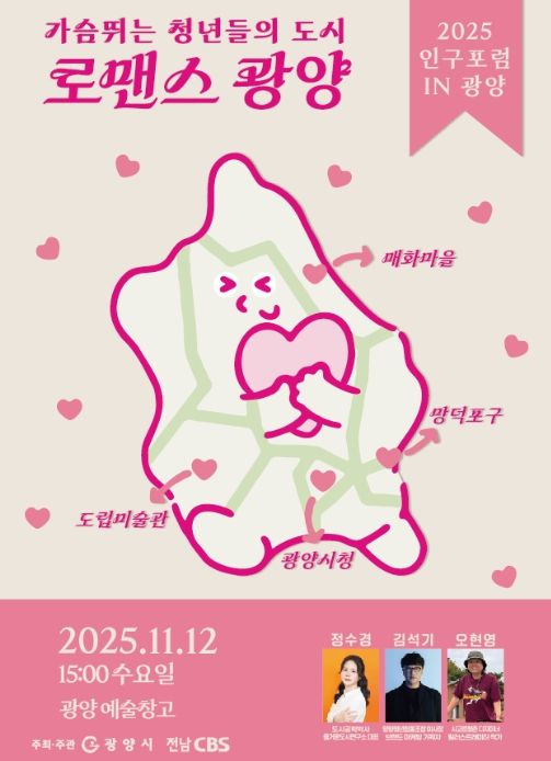 (포탈뉴스통신) 광양시는 오는 11월 12일 오후 3시, 광양예술창고에서 ‘2025년 인구포럼 in 광양’을 개최한다고 밝혔다.