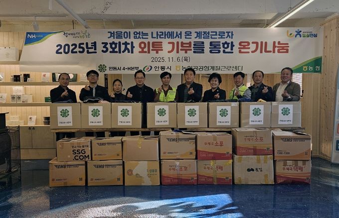 이날 행사에는 박정숙 안동시4-H본부 회장과 회원을 비롯해 신정식 안동와룡농협 조합장 등이 참여해, 안동시에서 근무 중인 공공형 외국인 계절근로자에게 겨울옷 1,000여 벌을 전달하며 따뜻한 마음을 나눴다.