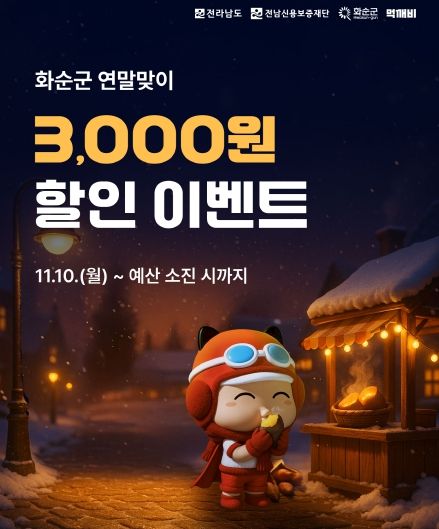 (포탈뉴스통신) 화순군은 공공배달앱 ‘먹깨비’ 이용 활성화와 지역 내 소비 진작을 위해 11월 10일부터 12월 31일까지 연말맞이 특별할인이벤트를 진행한다고 밝혔다.