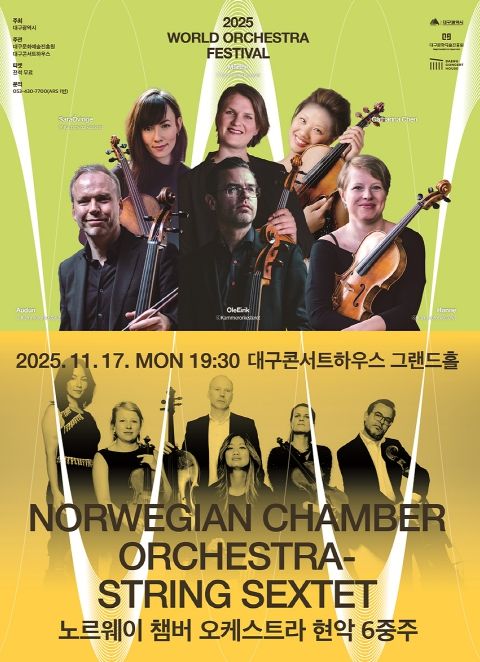 (포탈뉴스통신) (재)대구문화예술진흥원 대구콘서트하우스는 오는 11월 17일 저녁 7시 30분, 그랜드홀에서 2025 월드오케스트라페스티벌’의 하나로 노르웨이 챔버 오케스트라 공연을 개최한다.