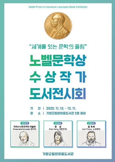(포탈뉴스통신) 거창군은 2025년 노벨문학상 발표를 기념하여 군민들의 높아진 문학적 관심을 반영하고 세계문학의 흐름을 조명하기 위해 오는 12일부터 12월 11일까지 한 달간 한마음도서관에서 ‘노벨문학상 수상 작가 도서 전시회’를 개최한다.