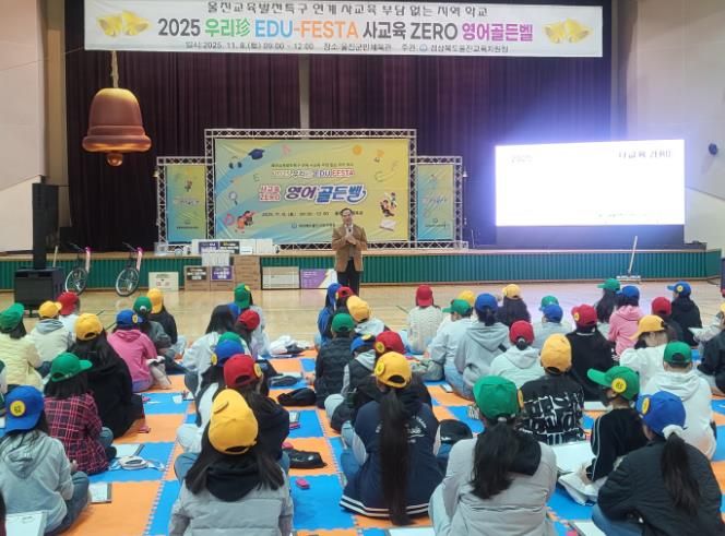 (포탈뉴스통신) 울진교육지원청은 11월 8일 오전 9시, 울진군민체육관에서 울진 관내 초등학생 5~6학년 100여명을 대상으로 '2025 우리珍 에듀 페스타 ‘사교육 ZERO 영어골든벨’'을 개최했다.
