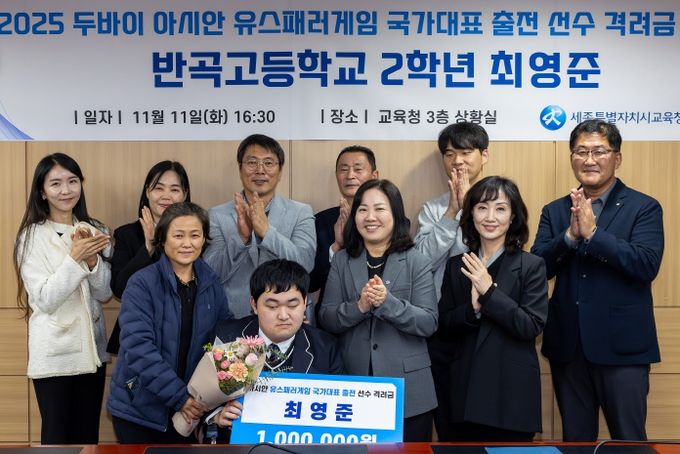 (포탈뉴스통신) 세종특별자치시교육청은 반곡고등학교 2학년 최영준 학생이 12월 7일부터 14일까지 아랍에미리트 두바이에서 열리는 ‘두바이 2025 Asian Youth Para Games(아시안 유스패러게임)’ 뇌병변장애(F33) 원반던지기 종목에 국가대표로 출전함에 따라 함께 축하하고 격려했으며, 지원금 100만 원을 전달했다고 밝혔다.