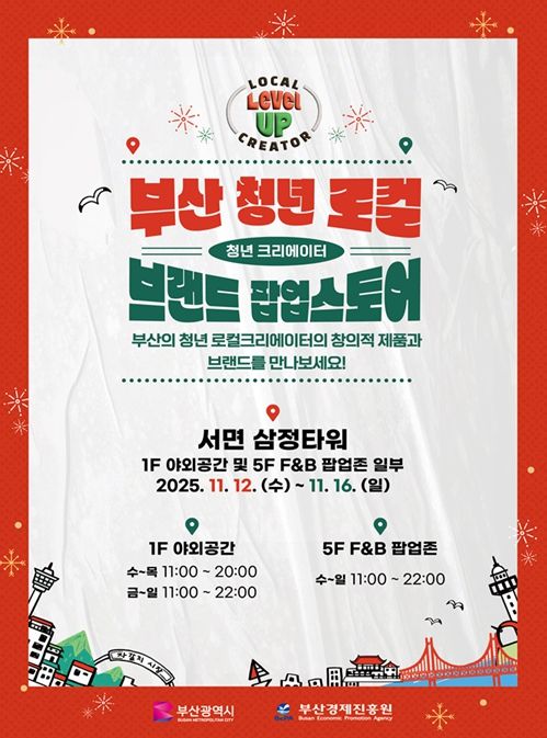 (포탈뉴스통신) 부산시와 부산경제진흥원은 오늘(12일)부터 16일까지 5일간 서면 삼정타워에서 '2025 부산 청년 로컬 브랜드 팝업스토어'를 개최한다고 밝혔다.