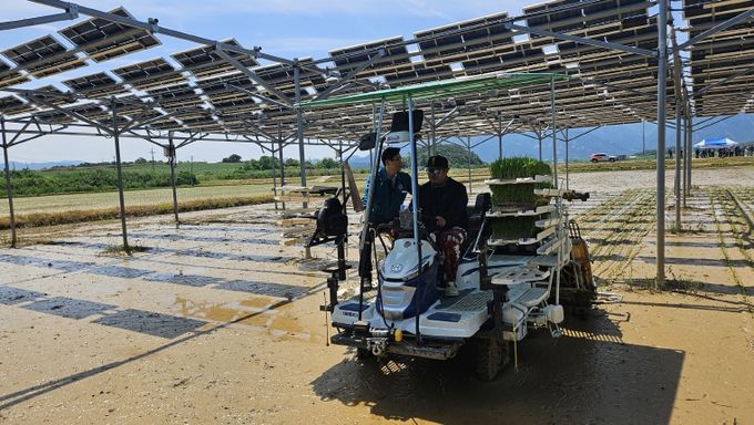영암군은 2023년 농림축산식품부의 예산을 지원받아, 지난해 농업기술센터 직영 논 1,000㎡ 면적에 45kW 규모의 영농형 태양광 설비를 설치했다.