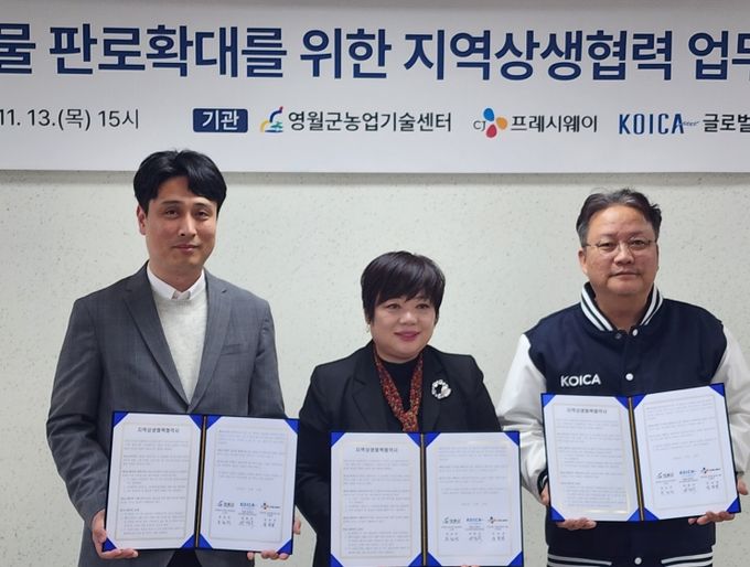 (포탈뉴스통신) 영월군농업기술센터는 2025년 11월 13일 목요일 오후 3시, 영월군농업기술센터 2층 회의실에서 CJ프레시웨이, KOICA글로벌인재교육원과 함께 지역상생협력 업무협약을 체결했다.