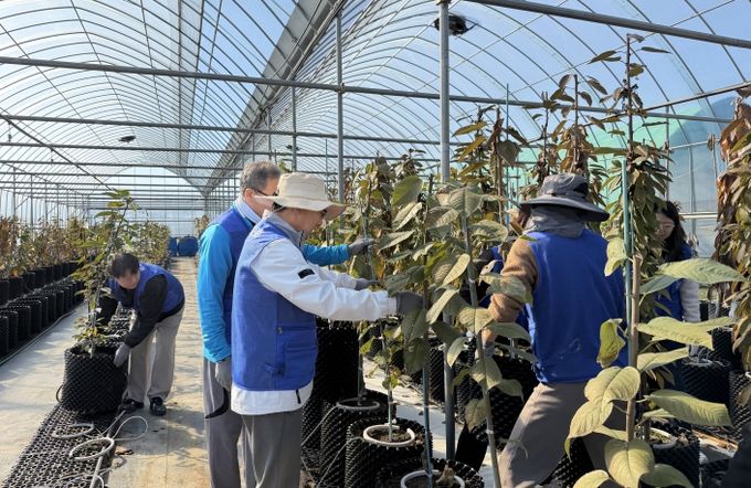 영동교육지원청은 지역 사회와의 상생을 강화하고 농촌 일손 부족 문제를 돕기 위해 14일 '2025년 하반기 농촌 일손돕기 봉사활동'을 영동군 심천면 심천리 농가에서 펼쳤다.