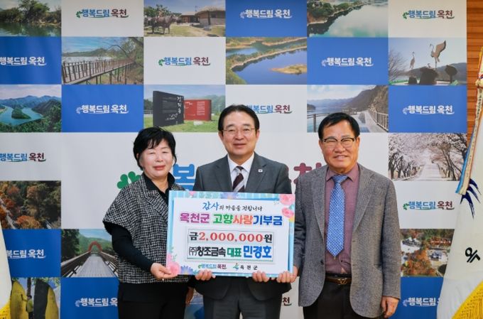 (포탈뉴스통신) 옥천군 관내 기업 ㈜창조금속 민경호 대표가 지난해와 마찬가지로 고향사랑기부금 200만 원을 기탁하며 옥천의 발전을 응원했다.