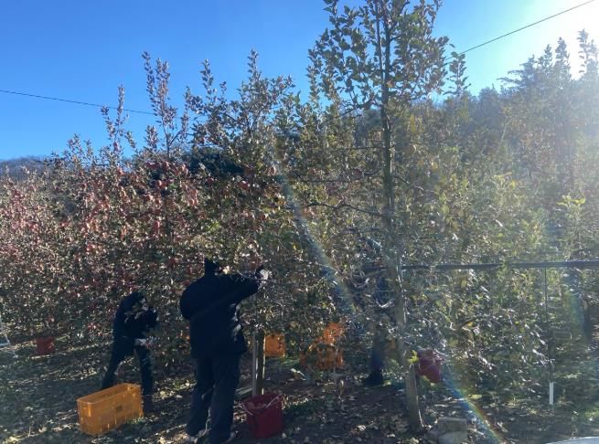 이날 참여자들은 사과 수확 철을 맞아 일손 부족으로 어려움을 겪고 있는 농가를 방문하여 농가주에게 간단한 사과 작업 방법을 안내받아 사과 따기 작업을 도왔다.