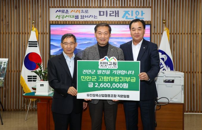 무진장축산농협 임직원들은 지난 2023년에 이어 올해도 자발적으로 기부에 동참해 정성을 모았으며, 근무지인 진안군의 발전과 지역사회에 대한 애정을 담아 꾸준히 나눔을 이어오고 있다.
