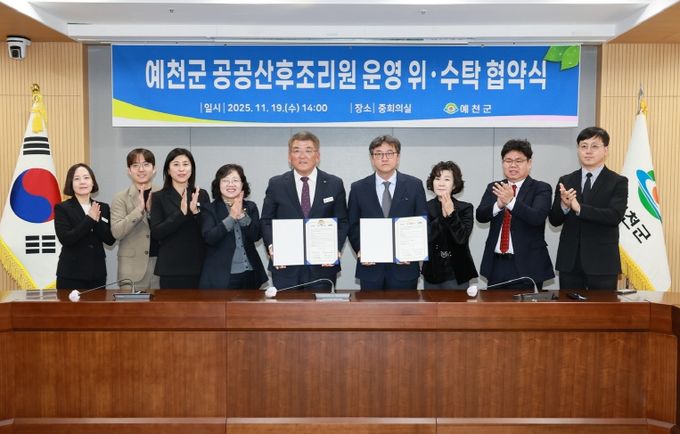 (포탈뉴스통신) 예천군은 19일 오후 2시, 군청 중회의실에서 예천권병원(병원장 권규호)과 예천군 공공산후조리원 운영 위‧수탁 협약을 체결하고 안정적이고 전문적인 산후 돌봄 서비스 제공을 위한 상호 협력을 약속했다.