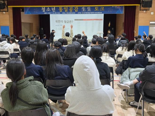 (포탈뉴스통신) 청도군은 지난 18일 청도고등학교 강당에서 민주평화통일자문회의 청도군협의회 주관으로 '2025 청소년 통일공감 生生(생생) 토크'를 개최했다고 밝혔다.