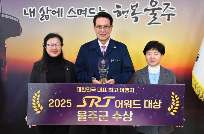 울주군은 이날 군청 군수실에서 이순걸 군수와 관계 공무원 등이 참석한 가운데 ‘2025 SRT 어워드’ 대상 상패 전달식을 가졌다.