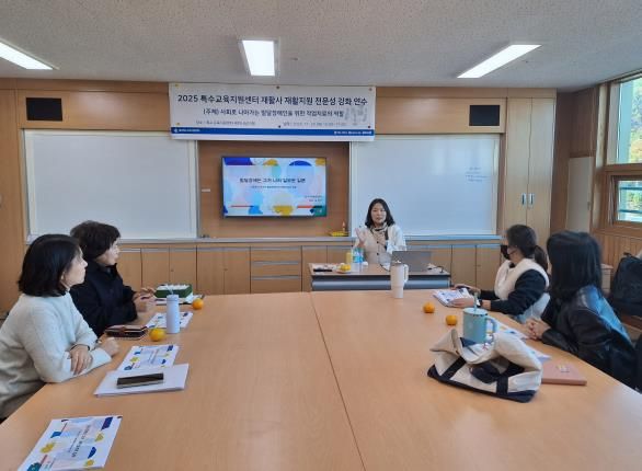 20일에는 보다아동발달센터 김미지 센터장을 초청해 특수교육 대상 학생의 기억력, 집중력, 시지각 기능 향상을 돕는 전략 훈련 등 인지 재활 역량을 높이는 감각통합 재활 지원 방안을 제시했다.