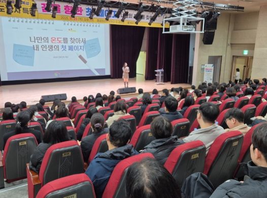 (포탈뉴스통신) 양산시는 지난 20일 이투스 수능강사 이도 강사를 초청해 ‘나만의 온도를 찾아서, 내 인생의 첫 페이지’라는 주제로 ‘2025 진로진학 특강’을 물금청소년문화의집 공연장에서 개최했다.