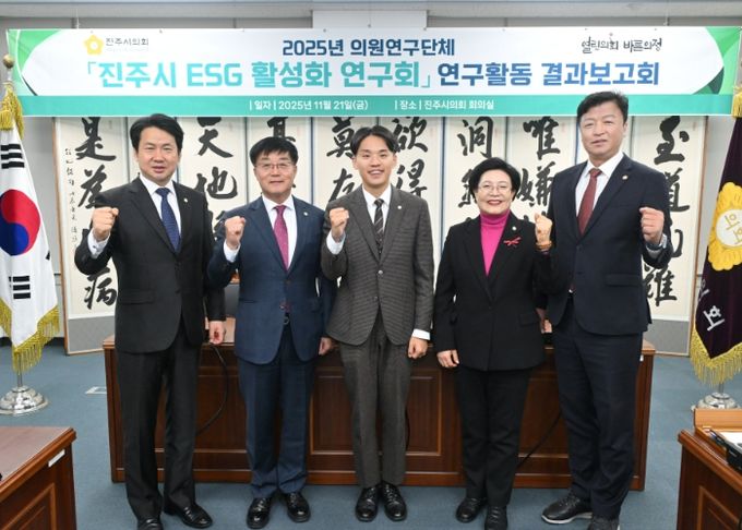 (포탈뉴스통신) 진주시의회 의원 연구단체 ‘진주시 ESG 활성화 연구회’는 21일 올해 연구활동을 마감하는 결과보고회를 열고, 연간 추진 성과와 향후 정책 제언을 공유했다고 밝혔다.